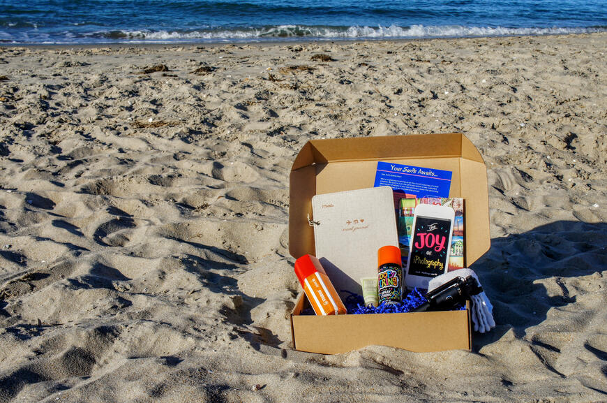 At the beginning of each month you'll be sent a box of 3-5 creator tools and travel items such as books, creation tech, and products to make your trips easier. Plus, you'll be introduced to that month's featured brand and/or hotel.
